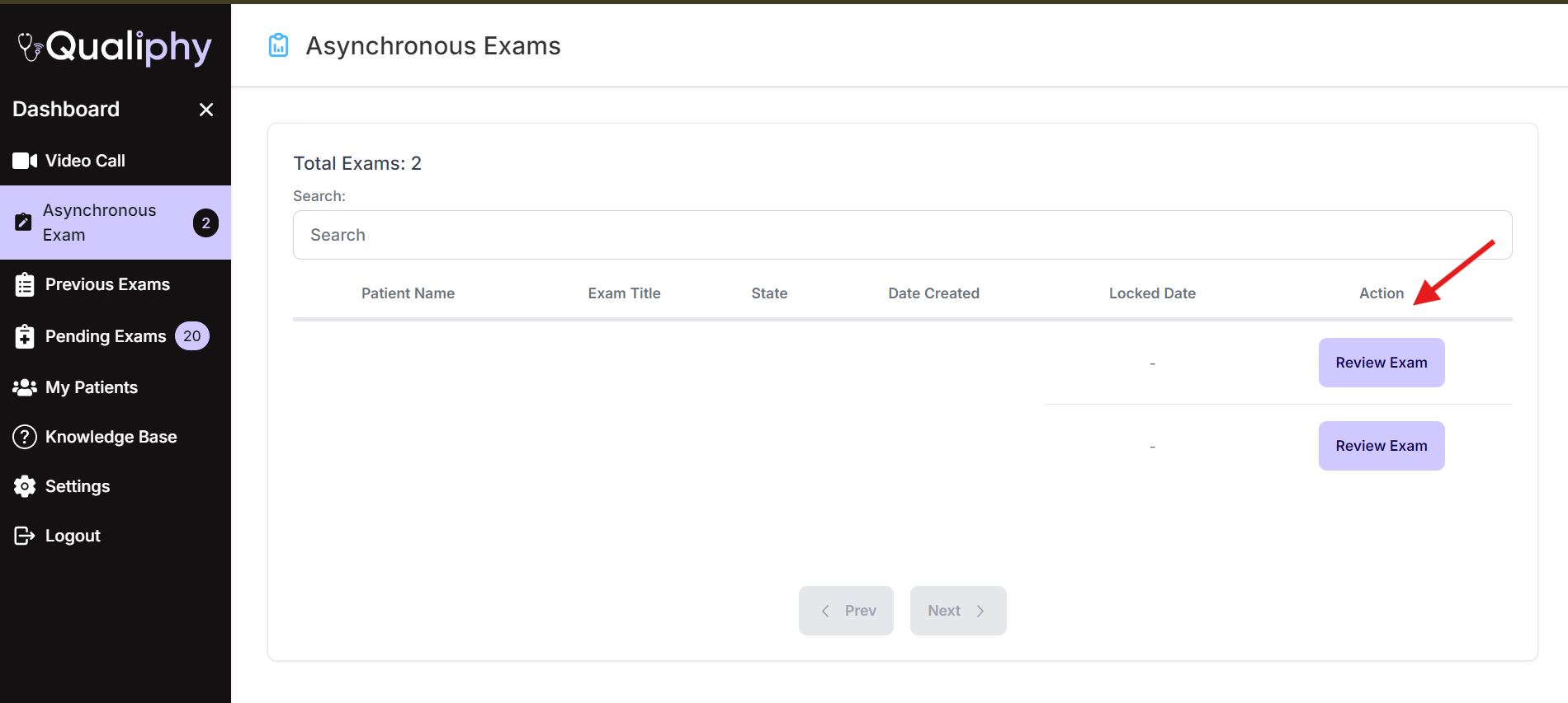 - Once you’ve located the desired exam, click on the Review Exam button next to it.