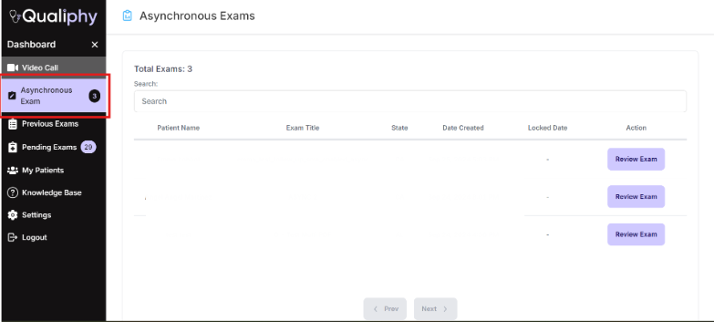 - Navigate to the “Asynchronous Exam” dashboard field.