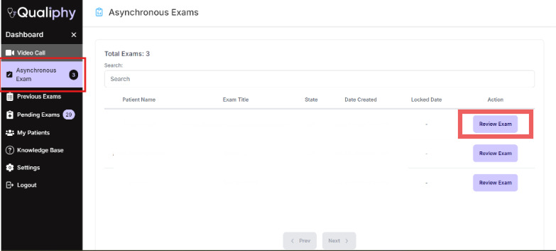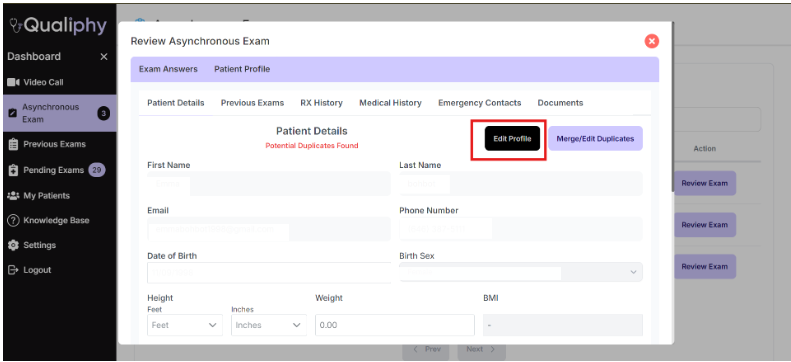 - Press “Review Exam” for the patient profile you wish to edit.