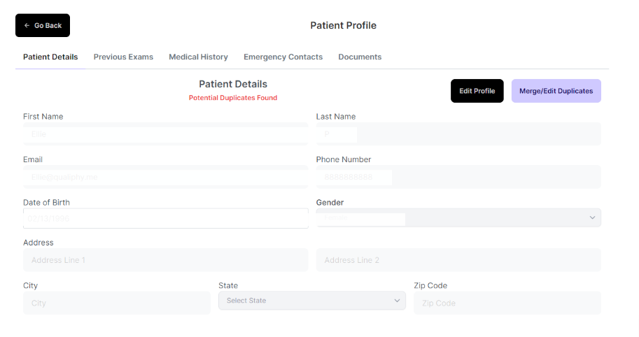 How Do I Merge/Edit Duplicate Patient Records in Previous Exams Tab?
