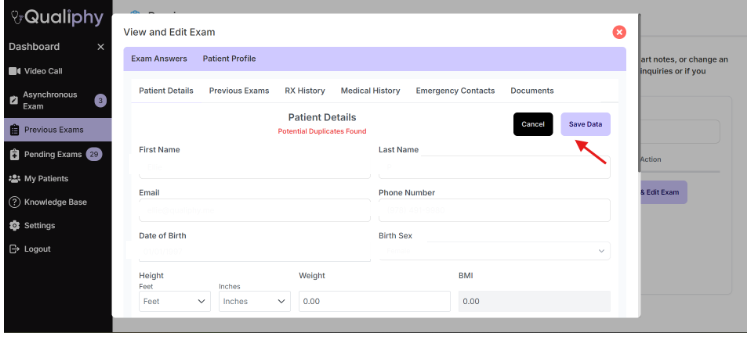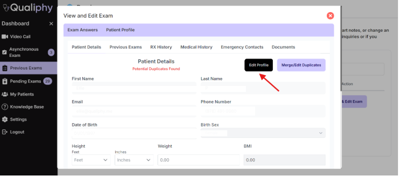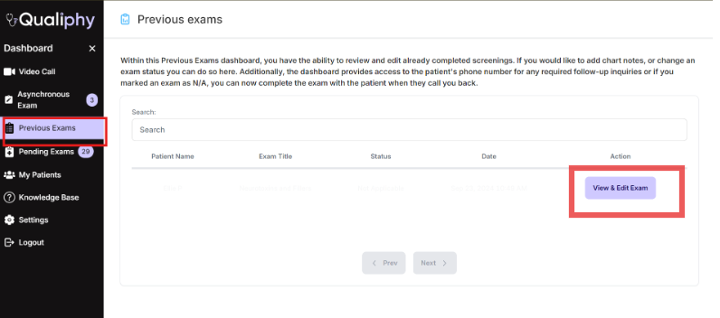 How to Edit a Patient Profile in the Previous Exams Tab?